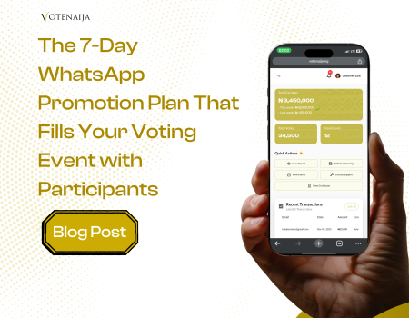 Digital Voting Strategies The 7-Day WhatsApp Promotion Plan That Fills Your Voting Event with Participants VoteNaija Editor April 10, 2026 Read More