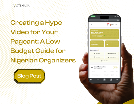 Digital Voting Strategies Creating a Hype Video for Your Pageant: A Low Budget Guide for Nigerian Organizers VoteNaija Editor April 11, 2026 Read More